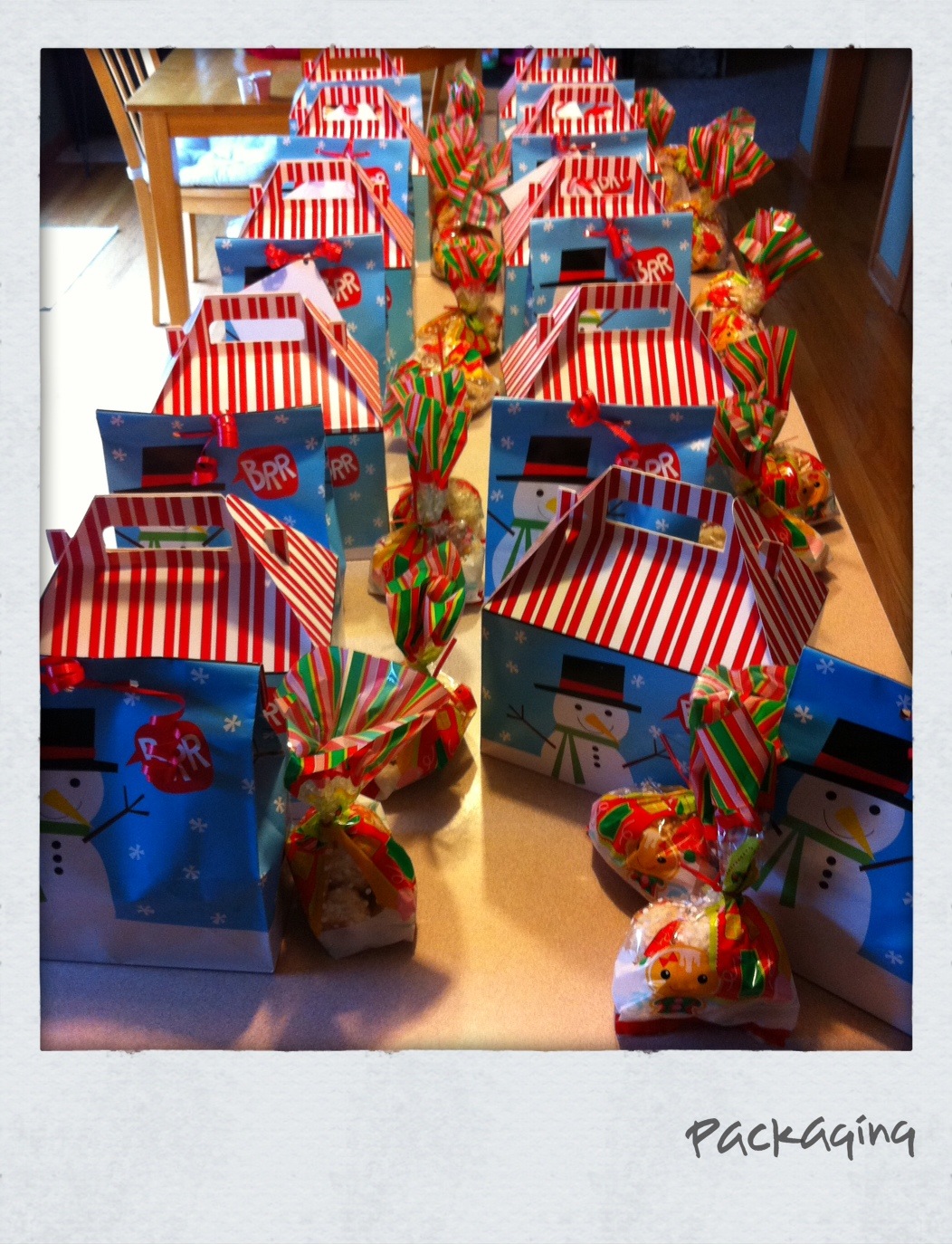 Last, but not least, always remember to use cute packaging. It gives the treats a nice touch. I usually scope out a store called Hobby Lobby. I always get mine 50% off. I've used bags, actually cookie boxes, photo boxes, and even disposable Tupperware. I think they were Ziploc and they come in a festive red this time of year. Think outside the box, no pun intended.